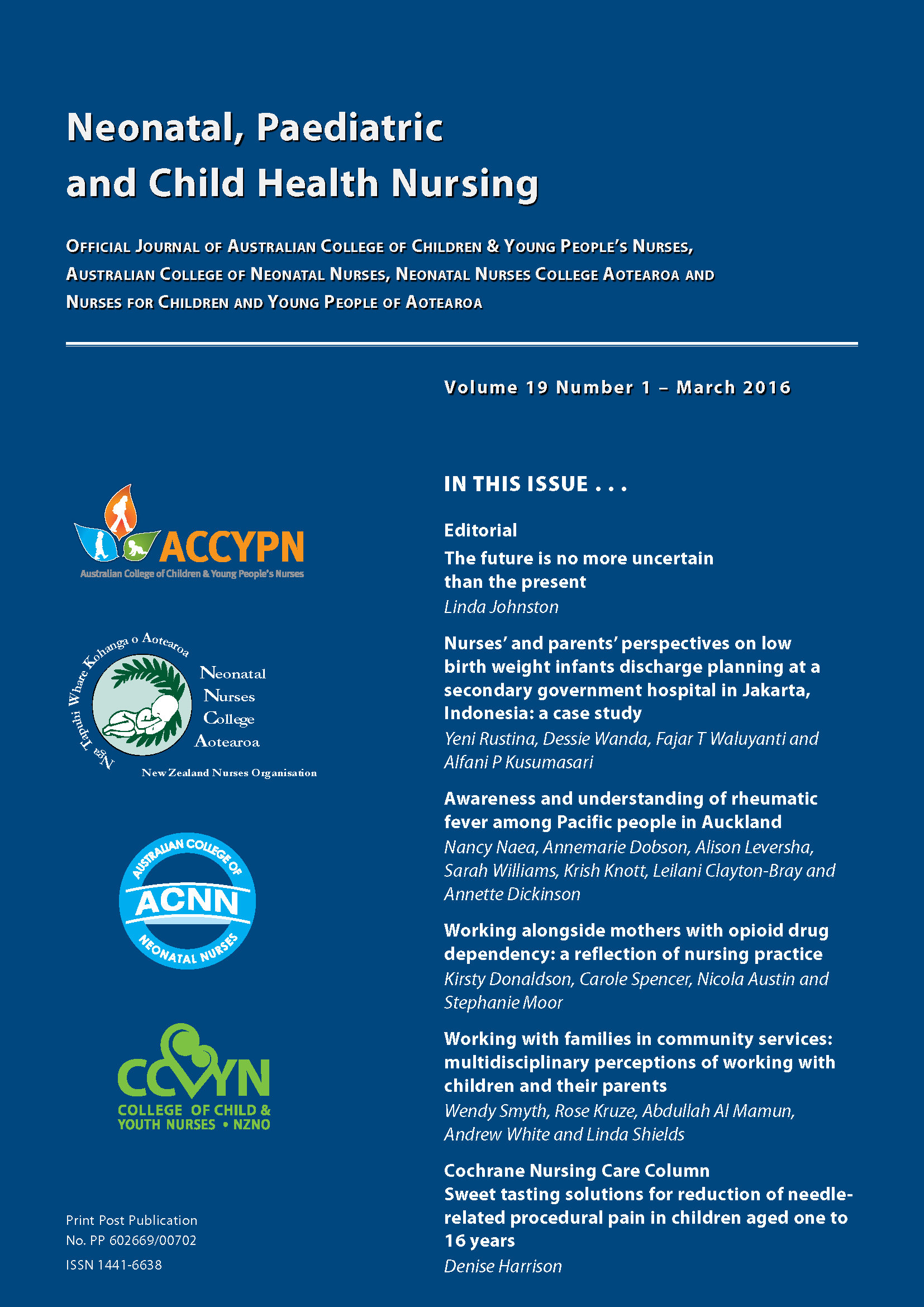 Neonatal Nurses, Neonatal Nurses College Aotearoa and the College of Child and Youth Nurses, NZNO. The journal was published from 2002